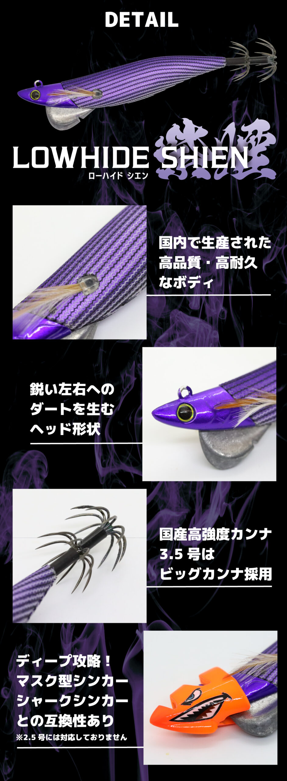 しゃくり時に深い水深でもイカにアピールする豪快ダートアクションを演出。